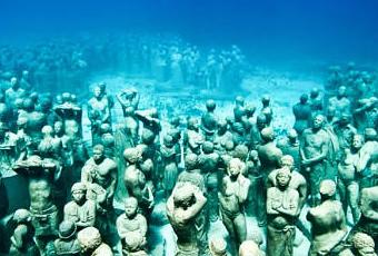 Quelque peu nostalgique des vacances et de l’eau turquoise, je vous propose de découvrir le concept original de Jason deCaires Taylor intitulé « Underwater Sculpture » . Plus d’une centaine de sculptures sous-marines qui nous immergent dans une sorte de paradis aquatique. L’artiste réalise ici un véritable tour de force en réussissant à totalement intégrer ses œuvres au coeur du monde aquatique. Ainsi les crabes, les poissons et même le corail trouvent à se nicher au creux des statues. Quand l’art fait corps avec la nature… juste brillant !