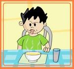 Oh non! Il ne va tout de même pas vomir... c'est dégoûtant à ce point ? Il faudrait peut-être que je goûte moi aussi, j'ai peut-être eu la main lourde sur le sel... Bah non pourtant, je ne vois rien à redire.