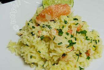 Hachez finement l’oignon. Dans une cocotte, faites chauffer l’huile et versez y l’oignon, laissez le fondre sans coloration. Ajoutez le riz, remuez, l’eau, les pistils de safran, du sel et du poivre. Remuez, baissez le feu et couvrez. Laissez cuire 10 minutes. Remuez de temps en temps. Hachez la ciboulette, égouttez la chair de crabe (si c’est une boite) et émiettez la grossièrement. Pressez le citron. Quand le riz est presque cuit, ajoutez le crabe et une fois la cuisson terminée, la ciboulette et le citron. Goutez, rectifiez l’assaisonnement si besoin et servez sans attendre.