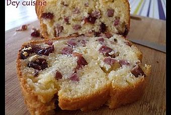 Pour 1 cake : 150g de farine, 1cs de levure, 3 œufs, 10cl d'huile neutre, 12.5cl de lait, 40g de fromage râpée, 50g de cranberries séchées, 190g de lardons de canard fumés, sel, poivre- Préchauffer le four à 180°C.