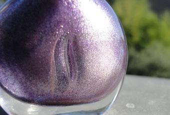 Eh oui c'est mon petit Crispy Tropical de Tony Moly qui a posé sur les photos :)Amethyst Stiletto est un très beau mauve avec des reflets rosés (imperceptibles sur les photos) gorgé de micro paillettes argentées.