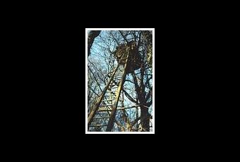 Ce qui est en haut, c'est une palombière accrochée à la cîme d'un narbe et ce qui est en bas, c'est un paloumayre.