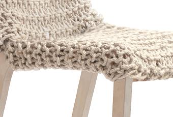 Cette chaise est unique. Inventée par les WADEBE Designer et entièrement réalisée à la main, vous pouvez la demander selon vos goûts. L’assise est en bois naturel mais l’assise tricotée par un réseau de “mamies boomers”, est au choix en maille tricotée en lin, chanvre, corde de couleur ou ruban. Le tout infrangible et résistant.