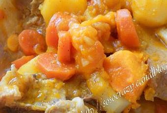 Puis remettre la rouelle de porc et les pommes de terre, dans la cocotte, courvrir et laisser cuire 1h30 au four a 180°C