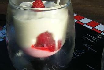 Ajoutez 3 framboises entières par dessus la crème puis disposez au frais le temps de réaliser la mousse au chocolat blanc.