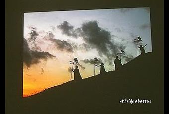 Jumpet Kuswidananto a conçu une belle métaphore des temps. Quatre voyageurs (le présent) discutent des rencontres qu'ils ont faites sur leur route (le passé) et de celles à venir (le futur), mais cherchant une nouvelle identité, un nouveau nom, un nouveau monde, tout en ignorant dans quelle direction le vent souffle.