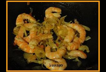 Ajoutez 500g de grosses crevettes décortiquées et cuisez 3-4 min en remuant.