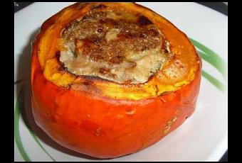 Une fois bien mélangé, farcir le potimarron de la farce et mettre au four à 200°.