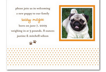 Enfin bref, pour ceux, et il faut bien le reconnaitre, pour celles parce que les mecs ils comprennent rien à la bienséance, qui sont encore plus accro que moi (Chéri, tu vas voir, il y a BIEN plus accro que moi!), il y a le doggy stationery, qui combine la passion du stationery à l’autre passion des américains : leur chien. Du coup, voici venue la mode du faire part pour célébrer l’arrivée du chien prodige dans la famille ou pour celui organiser une doggy play date dans le doggy park du quartier. Et oui ma bonne dame, le monde moderne est de plus en plus complexe ! Les gens normaux conviendront que c’est un petit peu « too much », les gagas de leur chien considéreront qu’après tout ils sont des membres de leur famille à part entière. Mouais.