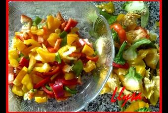 Dans une poêle, cuire les poivrons dans un peu d'huile d'olive, le sel et le poivre jusqu'à ce qu'ils soient tendres et légerement grillés.