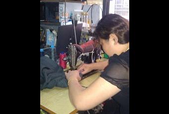 Je vais donc dans la rue après mon rendez vous, et trouve en vingt mètres un magasin qui peut 缝衣服, recoudre des habits. C’est une toute petite échoppe devant laquelle une dame est justement en train de coudre à la main. Je lui explique mon drame, elle rigole et m’aide à m’installer au fond du magasin, là où les passants me verront le moins. J’ôte mon pantalon ; elle me le recoud en moins de temps qu’il faut pour raconter cette histoire, comme on le voit sur la photo. Elle me le rend avec un grand sourire en me disant “tu as de la chance” ! Je lui pose quelques pièces sur la table alors qu’elle ne m’avait rien demandé. Elle me remercie en disant que c’est trop et me voilà reparti pour mes rendez vous, heureux d’être sorti de ce pétrin presque aussi vite que je n’y étais entré.