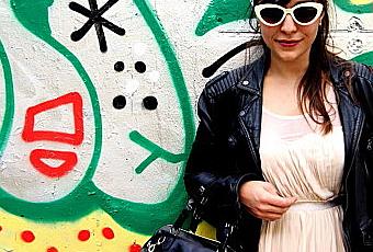 Perfecto : Zara, Robe : H&M, Chaussures : The Kooples, Sac : Dior "Hardcore", Lunettes : Mango.
