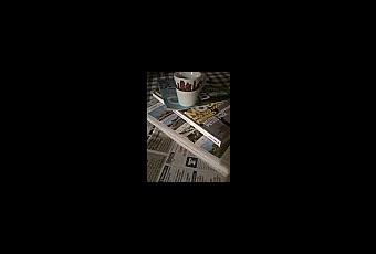 Donc me voilà récupérant mon journal du matin, qu'on jette par dessus mon portail tous les matins, une tasse de café bien noir et hop