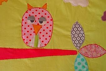 J'avais réalisé il y a quelques temps un ensemble tour de lit/gigoteuse au motif hibou sur la branche, pour des jumeaux, que j'avais décliné en une version "hibou éveillé" et "hibou endormi"... et je dois dire qu'il m'a valu beaucoup de compliments, et de demandes inspirées de cet ouvrage. Aujourd'hui, je vous présente une variante de cet ensemble tour de lit et gigoteuse hiver, qui m'a été commandé avec sa housse de matelas à langer assortie, et un doudou.