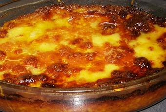 Préparez une petite béchamel et étalez sur le dessus , parsemez d'emmental et faites gratiner à 180° pendant 15-20min .