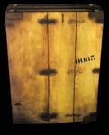 0063 Box - Meuble à tiroirs construit à partir d'une grande caisse de transport de l'armée. Mise à la verticale et construction de tiroirs sur mesure. L'ensemble est ponçé puis patiné à la cire + pigments de couleurs. Une petite série de meubles numérotés a été réalisée à partir de caisses de ce type. PRIX : 650 Euros