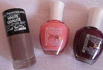 Bon, je m'égare là... Pour en revenir à ma petite progéniture, j'ai shoppé celle-ci chez Gifi! oui oui! Cela faisait un moment que j'entendais parler de cette marque "Miss Europ", que l'on trouve d'ailleurs essentiellement, dans les enseignes de ce type. Faible que je suis, je me suis laissée tenter par ces trois couleurs laquées (oui, car l'irisé trop peu pour moi). Je ne les ai pas encore testé mais ça ne saurait attendre!