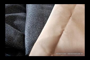 Je pense utiliser le lainage pour me faire une salopette (V1185 de Vogue) qui me semble être une bonne alternative au Pyjamou. Le coton (et corrigez moi si je me trompe) devrait servir, ou au patronage d’une polonaise ou comme triplure d’un corset.