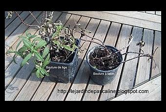 Adroite bouture à crossette (et non pas à talon comme je l'ai écrit) et à gauche bouture de tiges