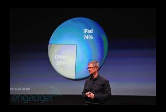 L'iPad n'est pas prêt d'être bousculé plus férocement par la concurrence, il domine le marché avec une part de 74 % ; trois tablettes achetées sur quatre sont donc des iPad. Les entreprises ne s'y sont pas trompées et ont suivis le pas puisque 92 % d'entre-elles qui sont listées dans le célèbre top 500 de Fortune ont déployés l'iPad dans leurs rangs. Comme dit Tim Cook, « on voit des iPad partout ». Son taux de satisfaction, annoncé à 95%, y est sans doute pour quelque chose.