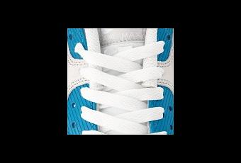 La Nike Air Max 90 Neutral Grey-White-Black-Blue possède un dessus qui combine du daim gris clair, du cuir blanc et du cuir noir contrastés par des accents de bleu, ce qui nous rappelle le coloris OG ‘Laser Blue’.