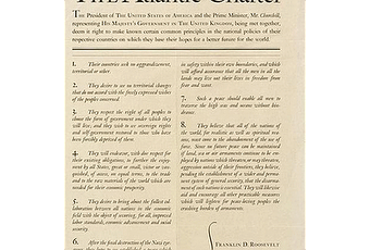 La référence faite à la Charte de l’Atlantique du 14 août 1941, qui « entreprend de jeter les fondements d’une nouvelle politique internationale » et servira de base aussi bien à la Déclaration des Nations unies (signée le 1er janvier 1942 par les représentants de 26 pays en guerre contre l’Allemagne) qu’à la Charte des Nations unies (signée le 26 juin 1945) réaffirme d’ailleurs l’espoir d’un « avenir meilleur pour le monde », et notamment le « droit des peuples à disposer d’eux-mêmes ».