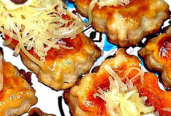 petit morceau de fricadelle.Servir