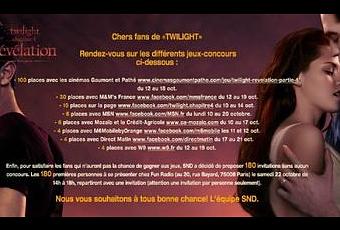 "J-40 ! Youpi c'est vendredi ! Chers fans de "TWILIGHT", comme promis, voici le détail des jeux-concours pour gagner votre place à la rencontre exceptionnelle avec Robert Pattinson et Ashley Greene.
