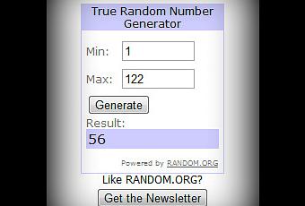 Merci à vous d'avoir été si nombreux à participer: 122! (dont un commentaire en double, remplaçé par un autre reçu par mail). Un très grand merci aussi pour tous ces mots gentils laissés par la même occasion - ca me fait énormément plaisir!