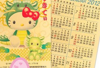 2012 sera l'année du dragon et comme tous les ans Sanrio en fait sa version Hello Kitty en sortant quelques objets ! Voici le calendrier en Or qui est vendu 7875 yen soit environ 76 € ... sa taille ? 5.4×8.6 cm ! Fabriqué au Japon par Mitsubishi Materials Corporation.