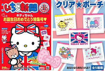 Novembre = anniversaire de Hello Kitty qui ira déjà sur ses 37ans d'existence le 1er novembre ! C'est donc sans surprise qu'elle est en couverture du dernier Strawberry news qui vient de sortir au Japon ! En cadeau , l'une des 5 pochettes Sanrio.