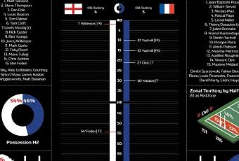Comme toujours depuis quelques semaines, Rugbyclub compte, additionne, divise, multiplie, pourcentise même. Enfin, surtout, nous allons emprunter l’info, avec leur autorisation, à nos excellent amis de Rugger Blogger qui décortiquent comme peu les matchs. Quels enseignements tirer de cette infographie ? Au risque de décevoir les supporters des Bleus qui voient dans ce succès une victoire dans la lignée de celles face aux Blacks en 1999 et 2007, qu’il n’en est finalement rien. Certes l’équipe de France a haussé son niveau de jeu, le contraire aurait forcé les joueurs à battre des records d’apnée, mais au niveau des plaquages, des rucks, des touches volées… les chiffres montrent une quasi égalité entre les deux équipes. La possession territoriale est strictement identique, chaque équipe eut sa mi-temps à 54-46. Seuls les turnovers sont clairement à l’avantage des hommes de Marc Lièvremont. Pour y voir, vous pouvez cliquer sur l’image.