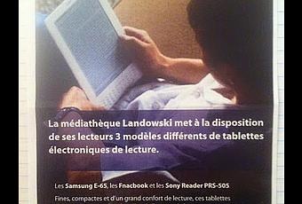 En France, un même mouvement est en route. Ainsi, par exemple, à Boulogne (Hauts-de-Seine), la librairie municipale prête gratuitement trois types de tablettes : Samsung E-65, Fnacbook et Sony Reader PRS-505. L'arrivée du Kindle et la popularité de l'iPad vont dynamiser ce marché, qui concerne également la presse, magazines et quotidiens (l'iOS 5 propose une appli "Newsstand").