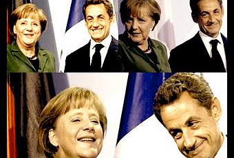 En fin d'après-midi ce dimanche à Berlin, Angela Merkel et Nicolas Sarkozy s'affichaient devant quelques journalistes. Elle était habillée de vert, une couleur qui porte malheur dans le monde du spectacle. Il avait son traditionnel costume bleu roi. Les deux grimaçaient des sourires empruntés devant les photographes. La conférence de presse dura 15 minutes, avec deux questions, pas plus.