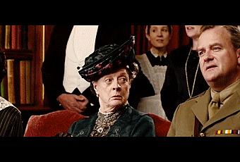 4) Le métier d’acteur semble être le plus simple du monde mais franchement, si tu y regardes de plus près, c’est de l’artisanat de haut vol. Maggie Smith triomphe dans chaque scène, même quand elle ne parle pas.. surtout quand elle ne parle pas. Dans les images ci-dessus, sans mot dire elle exprime: “Seigneur, les voilà qui chantent; divertissez les plébéiens tant que vous voulez, plutôt crever que chanter”.