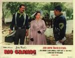 L'intérêt du film est ailleurs. Ford a utilisé ce film de commande pour s'entraîner à réaliser L'homme tranquille. Rio Grande, c'est l'histoire d'un couple qui se crée et d'une famille qui se reforme. Le couple est un couple de cinéma, Rio Grande c'est la rencontre de John Wayne, le déjà mythique (dans le rôle d'un colonel nordiste luttant contre les apaches) et de Maureen O'Hara, la rousse la plus explosive (dans le rôle de sa femme sudiste). Ils se sont séparés voici 15 ans parce que le colonel, obéissant aux ordres, a brûlé la plantation familiale de sa femme. Elle lui en veut bien sûr à mort. Ils ont un fils. Le fils après avoir échoué à West Point vient de s'engager dans les troupes de son père. La mère revient pour le reprendre. Voici pour l'enjeu familial. Ford était assez angoissé à l'idée de tourner une simple « histoire d'amour entre adultes » comme il définissait L'homme tranquille. Le voilà donc qui teste son couple dans ce film sensément d'aventures, observant comment fonctionne l'alchimie des corps, les jeux de regards, les frôlements de doigts. Et ça fonctionne. Les deux grands acteurs créent un ensemble de moments intenses qui sont du meilleur Ford et qui seront poussés à leur paroxysme l'année suivante. Par exemple le baiser, premier baiser passionné depuis 15 ans : Wayne revient d'une mission de secours épuisante. Il pénètre dans sa tente, c'est la nuit. Il allume une lampe à pétrole et, à peine au fond de la tente, quasiment tapie dans l'ombre, la silhouette de O'Hara se devine, il se tourne, éclaire ses yeux, elle a les lèvres qui tremblent et ils se jettent fougueusement dans les bras l'un vers l'autre. Pas un mot n'est échangé, c'est tout l'art du cinéma muet, l'art du cinéma pur.