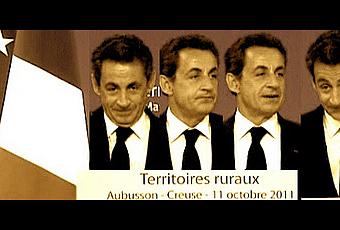 Sarkozy s'est ensuite rendu dans le village de Néoux dont quelques-uns des 300 habitants avaient été parqués dans le jardin de la mairie pour un « moment de convivialité ». « Grotesque » a commenté Arnaud LeParmentier sur son compte Twitter. Mais le Monarque était en retard. A quelques kilomètres de là, environ 1.500 personnes attendaient, sagement assises dans la salle polyvalente d'Aubusson, que Sarkozy daigne débuter son inévitable allocution « sur le thème de la ruralité ».