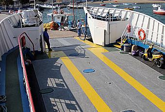 Nous prenons un petit ferry du port d'Adamas pour se rendre à Kimolos une île située au nord est de Milos sans oublier notre scooter comme vous pouvez le remarquer, la foule touristique n'est pas au rendez vous très peu de véhicules !!!!
