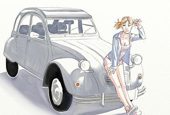 Marlène J., dessinatrice de talent, est aussi fans de la deux pattes.Après avoir publié un article dans "Planète 2cv", elle se lance, en compagnie de Monsieur To, dans 5 jolies illustrations "striptease sur une 2cv" pour son site de charme et charmant : "La fille du vendredi".