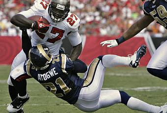 Blount devrait rater le match de dimanche, Curry pratiquement échangé aux Raiders et plus... -Les Bucs devront fort probablement se débrouiller sans LeGarrette Blount cette semaine contre les Saints. Blount s’est blessé au genou contre les Niners et il n’est pas tout à fait remis. Earnest Graham serait donc le RB #1, poste qu’il a occupé par le passé. Blount a 328 v et 3 TD en cinq matches avec une moyenne de 4.3 v/course. On se demande bien comment des parent peuvent choisir LeGarette comme prénom.