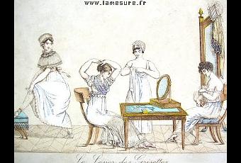Photographies 1 et 2 : 'Le lever des grisettes'. Estampe d'époque 1802-1812. © Photographies LM. Un autre