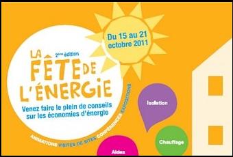 2ème édition de la Fête de l'Energie de l’ADEME Suite au succès de la 1ère édition, en 2010, l’ADEME, Agence De l’Environnement et de la Maîtrise de l’Energie et le réseau des Espaces Info Energie organisent la 2ème édition de la fête de l’énergie du 15 au 21 octobre 2011.A cette occasion, plus de 400 conseillers Espaces Info Energie se mobilisent partout en France et invitent les particuliers à participer à de multiples animations gratuites et pédagogiques (visites de sites, conférences, expositions, animations de rue, ciné-débats...) sur le thème des économies d’énergie dans l’habitat.Quelques exemples d’animations : en Lorraine, une exposition itinérante intitulée « la caravane de l’énergie » proposera des animations avec une dimension festive ; en Languedoc-Roussillon, une tournée régionale de théâtre d’improvisation a pour but d’aborder la maîtrise de l’énergie et de faire connaître les Espaces Info Energie sous un angle novateur, l’humour…