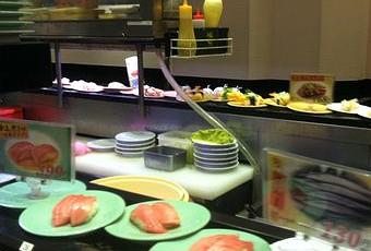 Une spécialité de la cuisine japonaise, vite mangée entre midi et deux: les sushi shop. Vous connaissez peut être? Il y en a sur Paris: le concept: un tapis tournant avec les différents plats passent devant vous. Le chef, au centre, les prépare petit a petit. Chaque assiette a une couleur et une couleur = un prix. Vous mangez ce que vous voulez et cela en moins d'une demi heure. Devant vous, sur votre comptoir, un robinet, une de l'eau chaude, de quoi vous préparer du thé vert a volonté! Un concept très sympa: 15/20 pour l'idée!