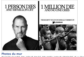 Des millions meurent dans des accidents de la route, personne ne pleure. Un avion se crache, on en chie une pendule pendant trois semaines. Je vais mettre ça en images en épater tout Facebook.