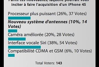 Lors du dernier sondage, nous vous avons demandé quelle nouveauté pourrait vous inciter à devenir l’heureux (se) propriétaire d’un iPhone 4S.
