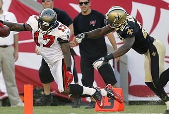 Un autre résultat qui nous rappelle que les matches se jouent sur le terrain et pas dans des calculs de stats. Les Saints semblaient avoir l'avantage à tous les niveaux dans ce duel mais les Bucs ont causé quatre revirements (3 INT de Brees!) et se sont sauvés avec une méga-victoire. Le match a mal commencé pour les Saints, Jimmy Graham est entré en collision avec Sean Payton en sortant en touche et le coach s'est déchiré le MCL et fracturé le tibia! La plus grave blessure de coach de tous les temps! Earnest Graham a très bien remplacé LeGarrette Blount avec 109 v pendant que les Saints n'amassait que 77 v au sol. Josh Freeman est redevenu lui-même avec 303 v, 2 TD et 0 INT. Il a lancé une splendide bombe à Arrelious Benn pour un TD, comme à Madden. Un dénommé Quincy Black a intercepté une passe de Brees dans la zone des buts avec 4 minutes à faire au match au moment où les Saints semblaient se diriger vers le TD victorieux. Les Bucs sont donc maintenant à égalité avec le N'Arwlins avec 4 victoires. Comme les Falcons sont à 3-3, ça promet dans la NFC Sud.