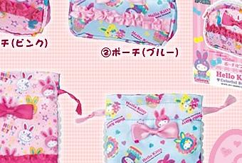 La marque japonaise Kabaya ( bonbons , biscuits ) possède une gamme de produits qui sont des boites surprises qui contiennent un bonbon et donc une surprise. Voici que sort au Japon , deux nouvelles collections Hello Kitty Colorful Bunny ! La première permet de collectionner deux trousses et deux pochettes ! En plus le prix est tout mini puisqu'une boite coûte seulement 315 yen soit environ 2,90 € ! La seconde est sortie fin septembre et il s'agit d'une collection de stickers , vendu également avec un bonbon et ça coûte ici , que 210 yen soit environ 1,90 € ! En vente au Japon.