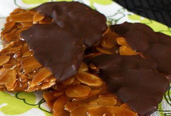 Voici une nouvelle recette de florentins aux amandes, cette fois-ci au chocolat au lait, qui m’a été envoyée par Améloche du blog la cuisine d’Améloche. Ces florentins sont vraiment différents de ceux qui j’ai récemment réalisés avec des fruits confits. Ces derniers étaient relativement mous, alors que ceux-ci sont bien plus durs. Je pense qu’ils s’apparentent plus à de vrais florentins étant donné que l’on réalise pratiquement un caramel, du moins il faut bien attendre que le sucre fondu obtienne une jolie coloration brune. Je vous laisse donc découvrir la 14ème recette de ce concours chocolaté, et lire mon verdict à la fin de cet article !