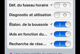 Il faut aller dans : Réglages => service de localisation => service système. Puis désactiver : Circulation, Déf. du fuseau horaire, Diagnostic et utilisation…