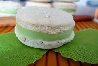 Pour un petit goût oriental, ces macarons dont les coques sont faites avec de la poudre de sésame sont garnis d'une ganache chocolat blanc-thé vert.Une expérience gustative très zen...